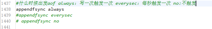 它会把每个写命令通过write函数记录到日志文件中。默认改持久化没有开启。需要修改配置文件来开启aof模式。