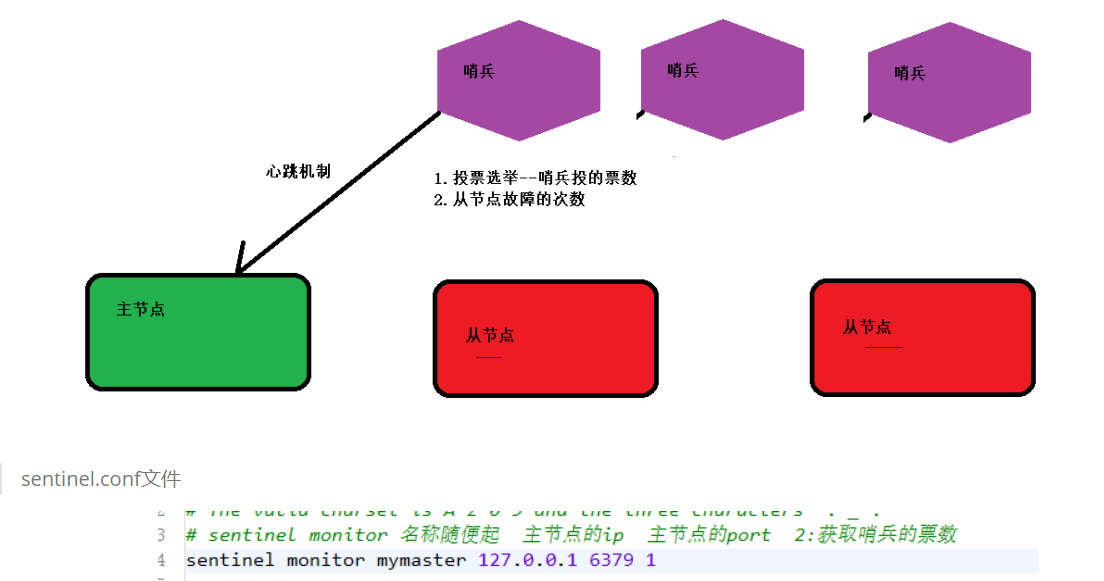 上面的主从模式的缺点:----如果主节点宕机后,从节点无法上位,该redis服务就无法执行写操作了。----哨兵模式。