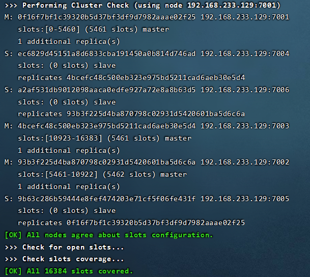redis-cli --cluster create --cluster-replicas 1 192.168.223.166:7001 192.168.223.166:7002 192.168.223.166:7003 192.168.223.166:7004 192.168.223.166:7005 192.168.223.166:7006