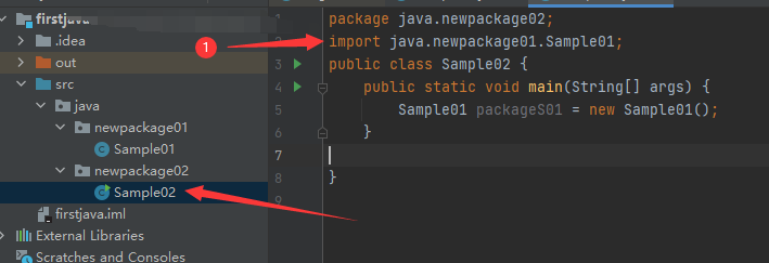 在Sample02包下,若是想要实例化Sample01包下的类,需要使用import命令声明。