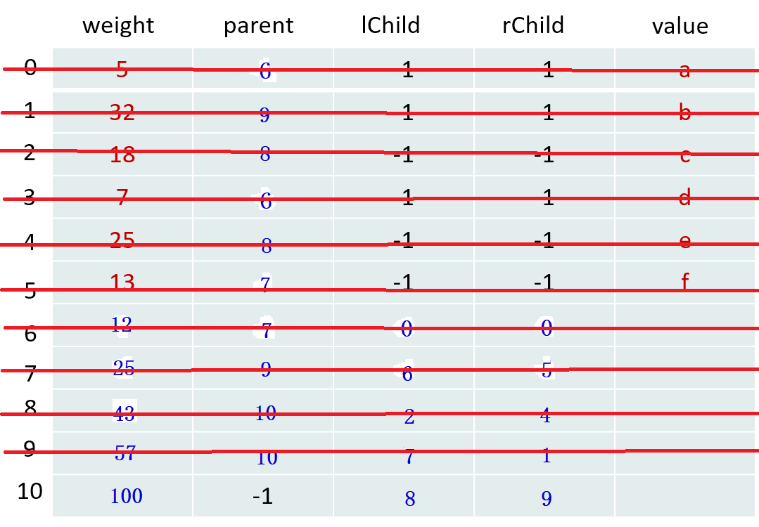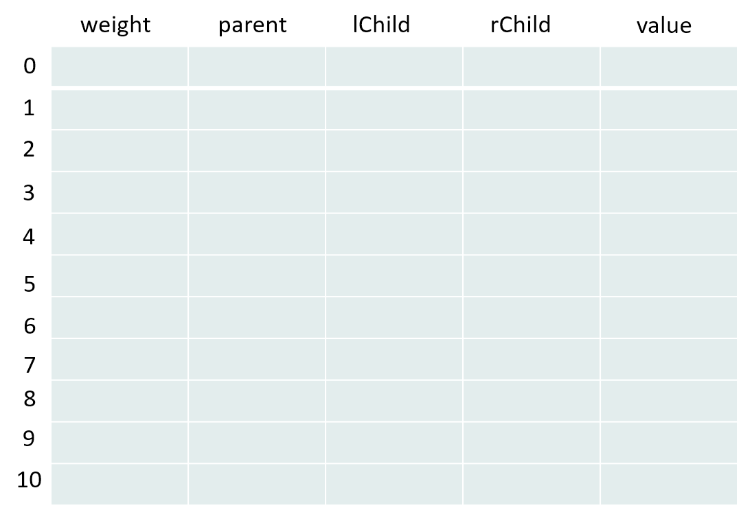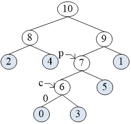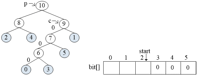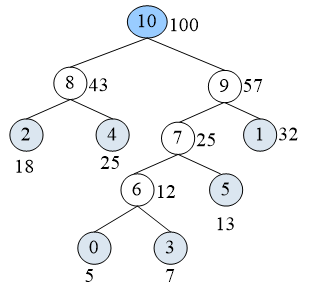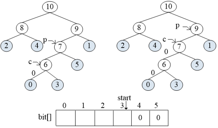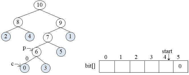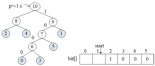 对n个叶子结点从后向前进行编码,不是树根就一直编码