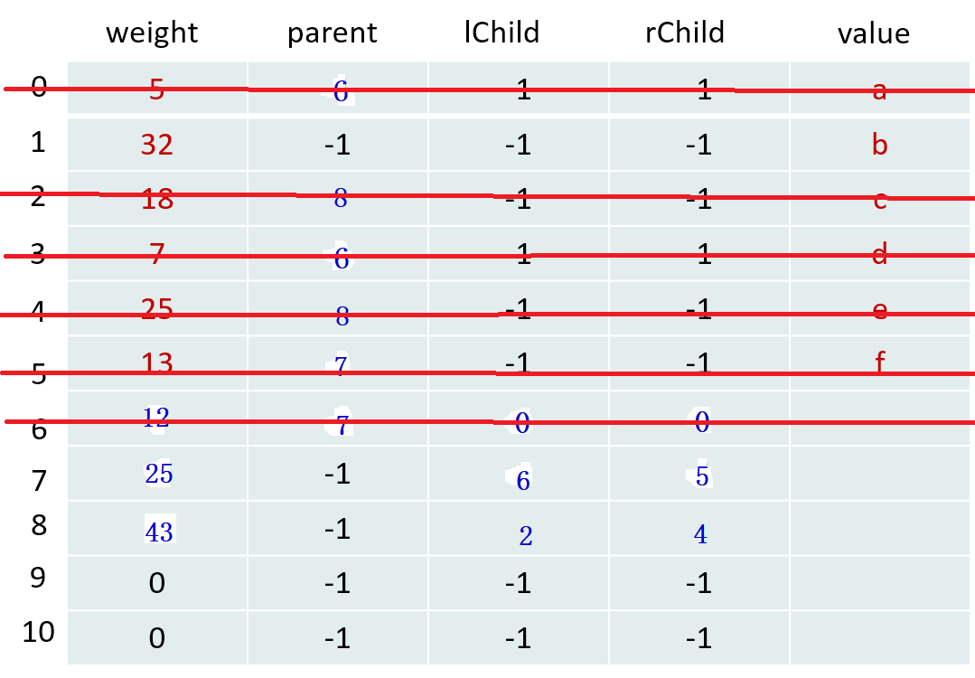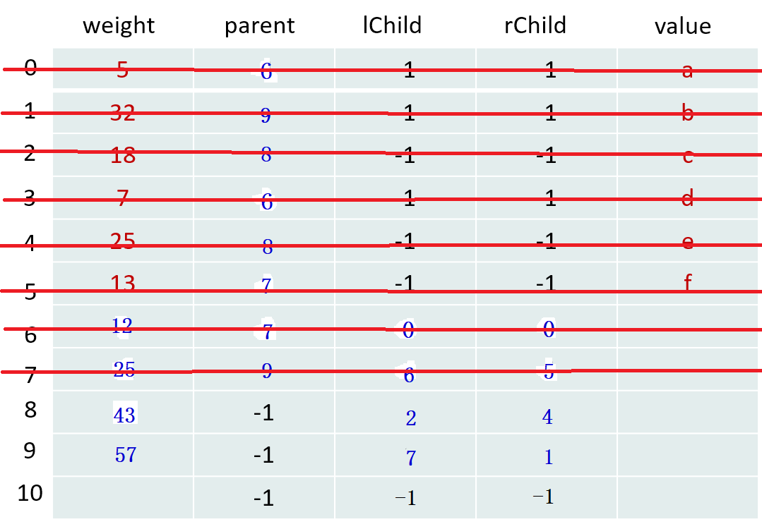 把叶子结点的编码信息从临时编码cd中复制出来,放入编码结构体数组