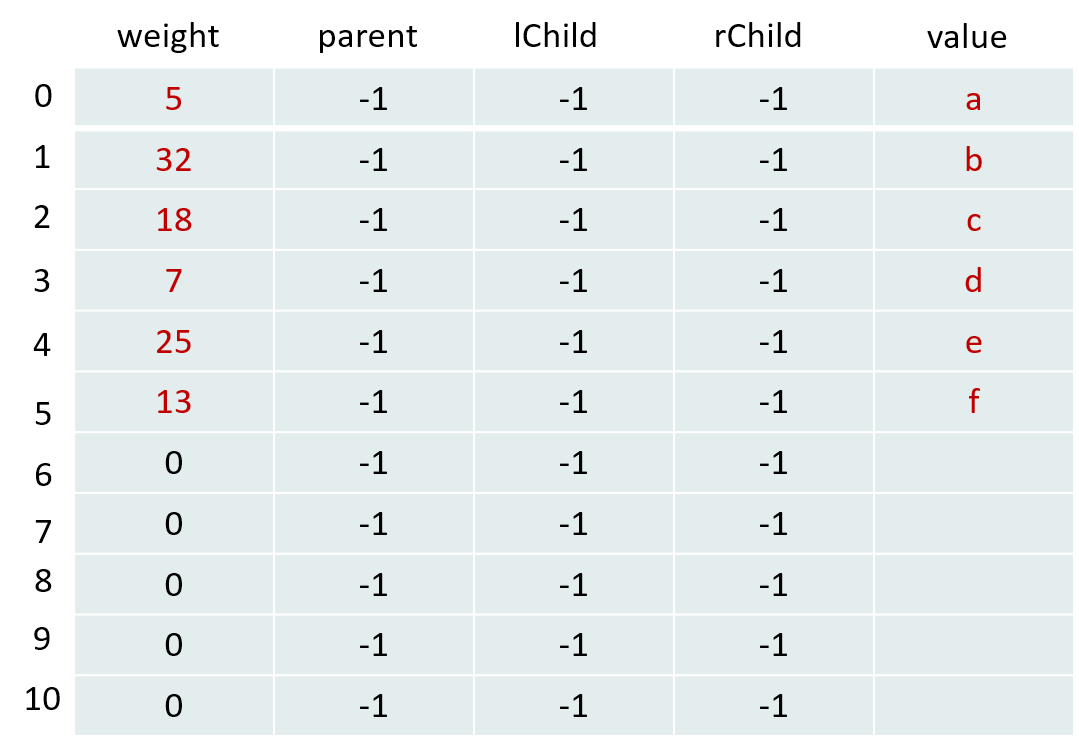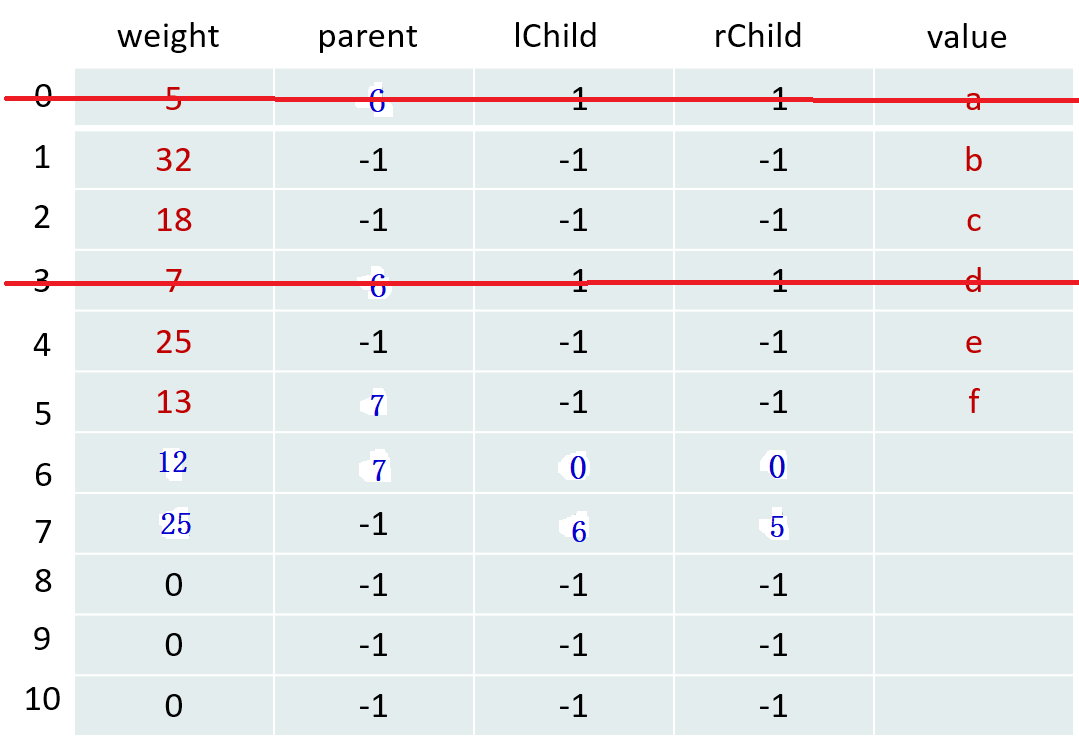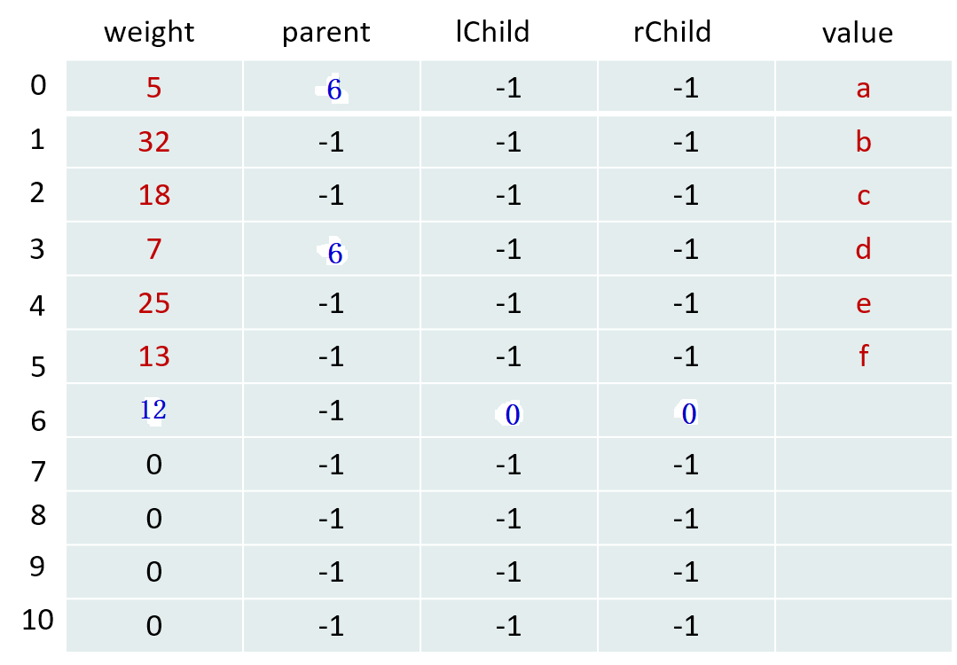 m1、m2中分别存放两个无父结点且结点权值 最小和次小 的两个结点
