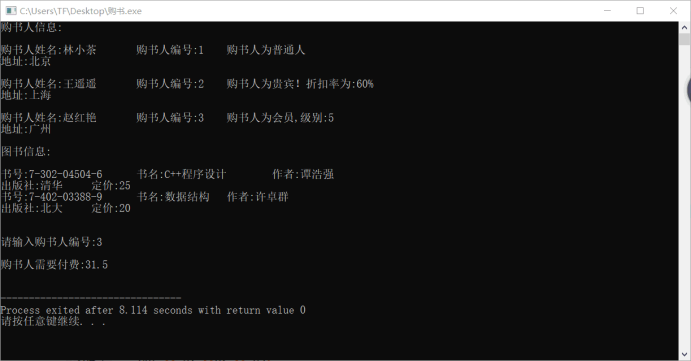 cout<<"购书人信息:\n\n";