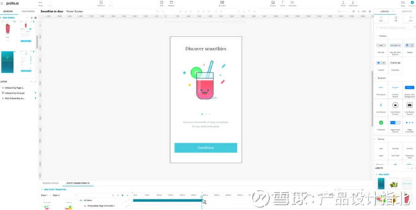 Proto.io 也是国外一款轻便好用的在线原型设计工具,在大多数浏览器中都能使用,支持导入Sketch和PS设计稿做交互。界面清爽,拥有较为丰富的UI组件。可以直接用链接分享原型,而且因为集成了移动录屏工具lookback,适用于用户测试场景:可以记录用户点击、滑动、点击区域;也可以记录用户的声音和facecam视频评论。