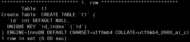 create table t1( id int, unique index id_index(id));