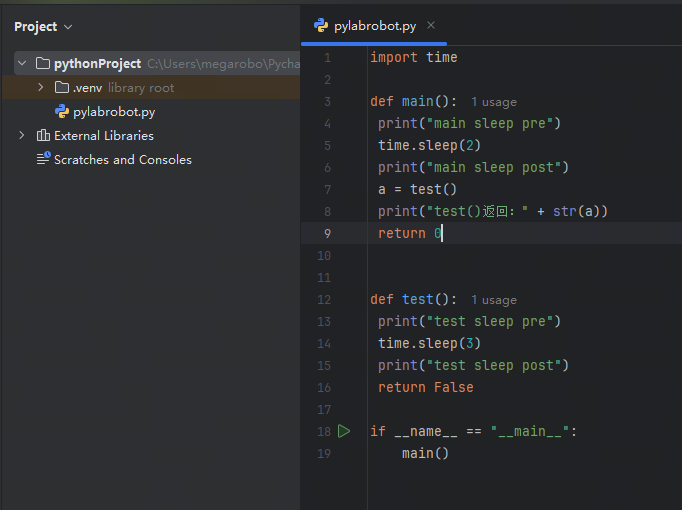 - 我的Python代码如下(有一个main函数,main函数调用了test函数):