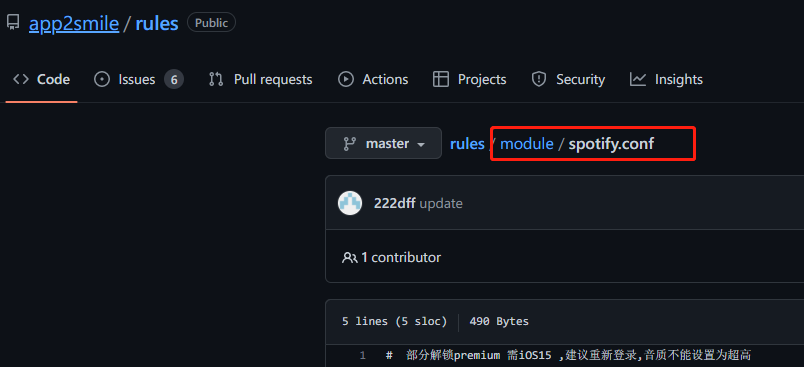 (会自动重定向到https://raw.githubusercontent.com/app2smile/rules/master/module/spotify.conf)