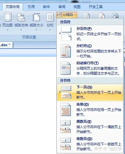 将鼠标放入需要插入分节符的地方,选择:页码设置→分隔符→下一页。