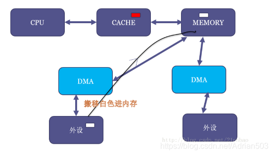 但是,假设现在DMA把外设的一个白色搬移到了内存原本红色的位置: