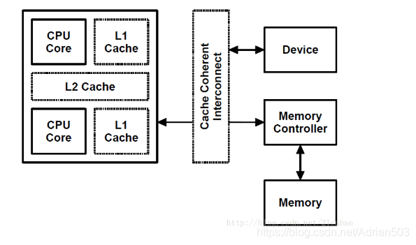 但是,由于现代SoC特别强,这样有一些SoC里面可以用硬件做CPU和外设的cache coherence,如图中的cache coherent interconnect: