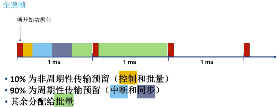 中断和同步拥有优先获得传输的资格,如果没有中断和同步,批量占用所有时间片