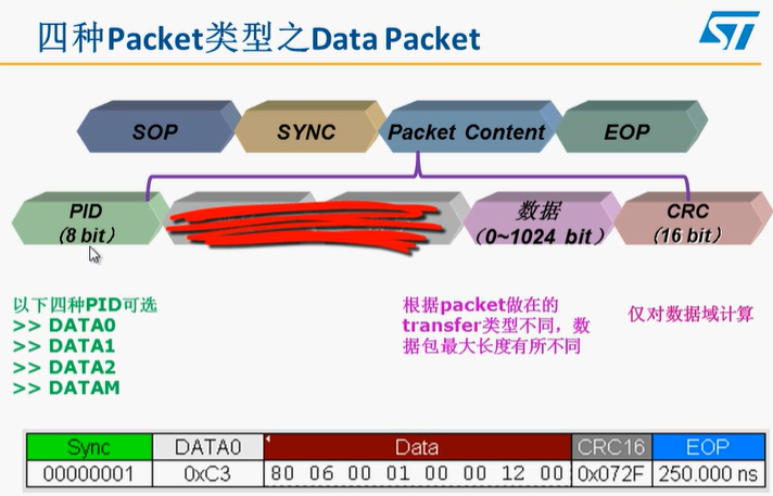 - 每个微帧的起始位置都有一个专门的时间槽用来发送SOF包(被称为微帧起始包Micro Start of Frame, MSOF),用于高速设备的精确同步。