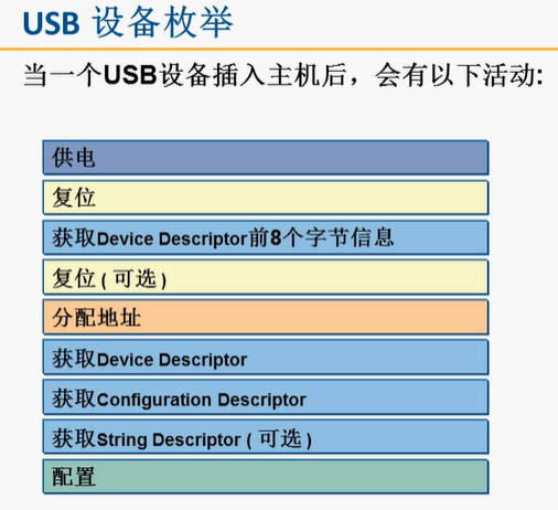 设备插入主机后,主机获取设备信息、设置设备地址的过程叫枚举。