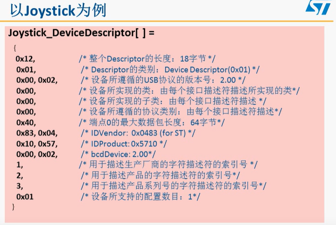 每一个USB设备只有一个设备描述符,主要向主机说明设备类型、端点0最大包长、设备版本、配置数量等等;