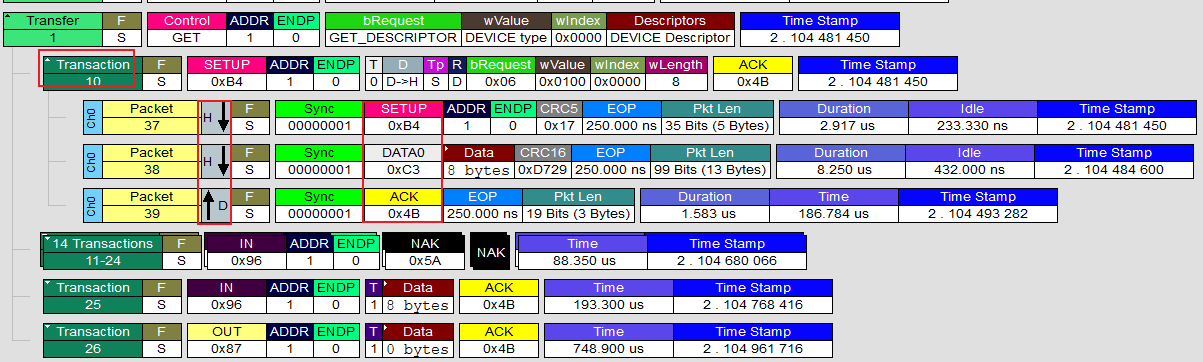device向host返回设备描述符是一次事务(数据包是device发给host)
