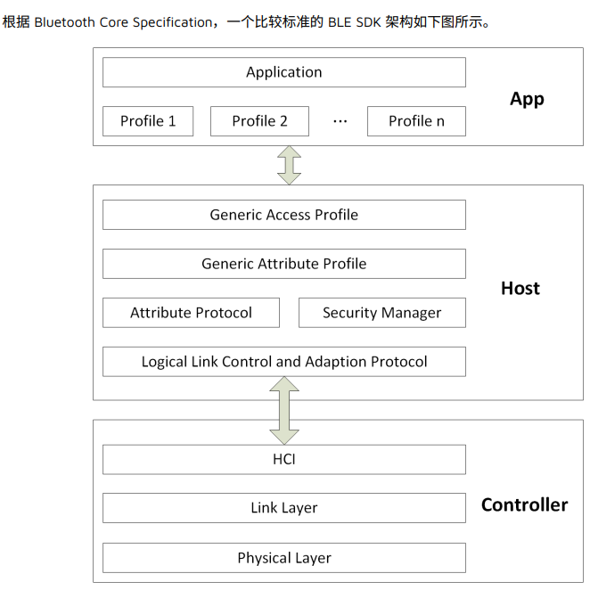 实现射频相关的模拟和数字部分,完成最基本的数据发送和接收,Controller对外接口是天线,对内接口是主机控制器接口HCI(Host controller interface);包含物理层PHY(physicallayer),链路层LL(linker layer),主机控制器接口HCI。