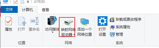 windows ”此电脑“,点击”映射网络驱动器“