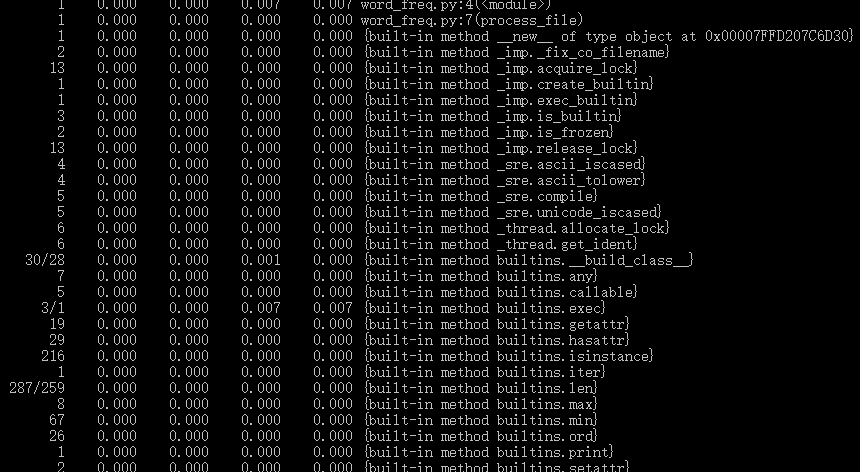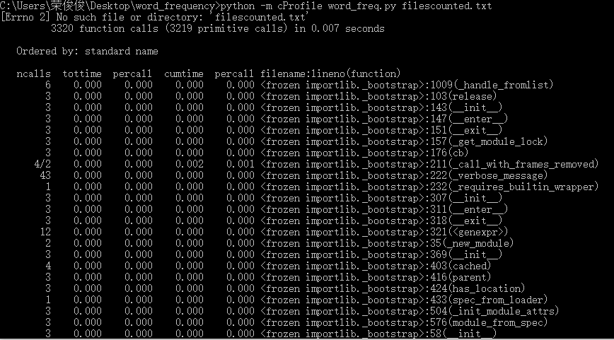 - 总共有3320次函数调用,程序总共耗时0.007秒