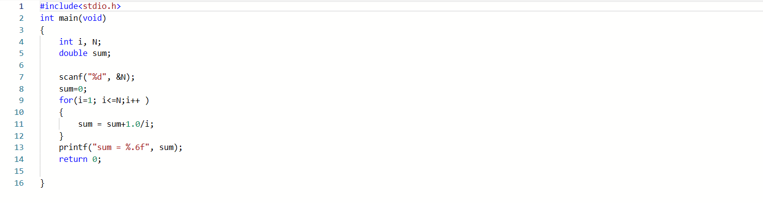 本题要求:计算序列 1 + 1/2 + 1/3 + ... 的前N项之和。