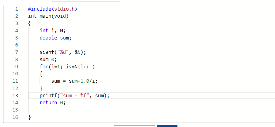 (2.)数据处理:使用了sum = sum+1.0/ i的表达式,使用for循环语句 - 1.1.2实验代码截图