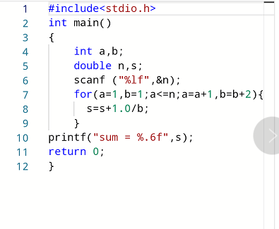 (2.)数据处理:使用了sum=sum+1/(2*i-1)的表达式,使用for循环语句。 - 1.2.2题二PTA代码截图