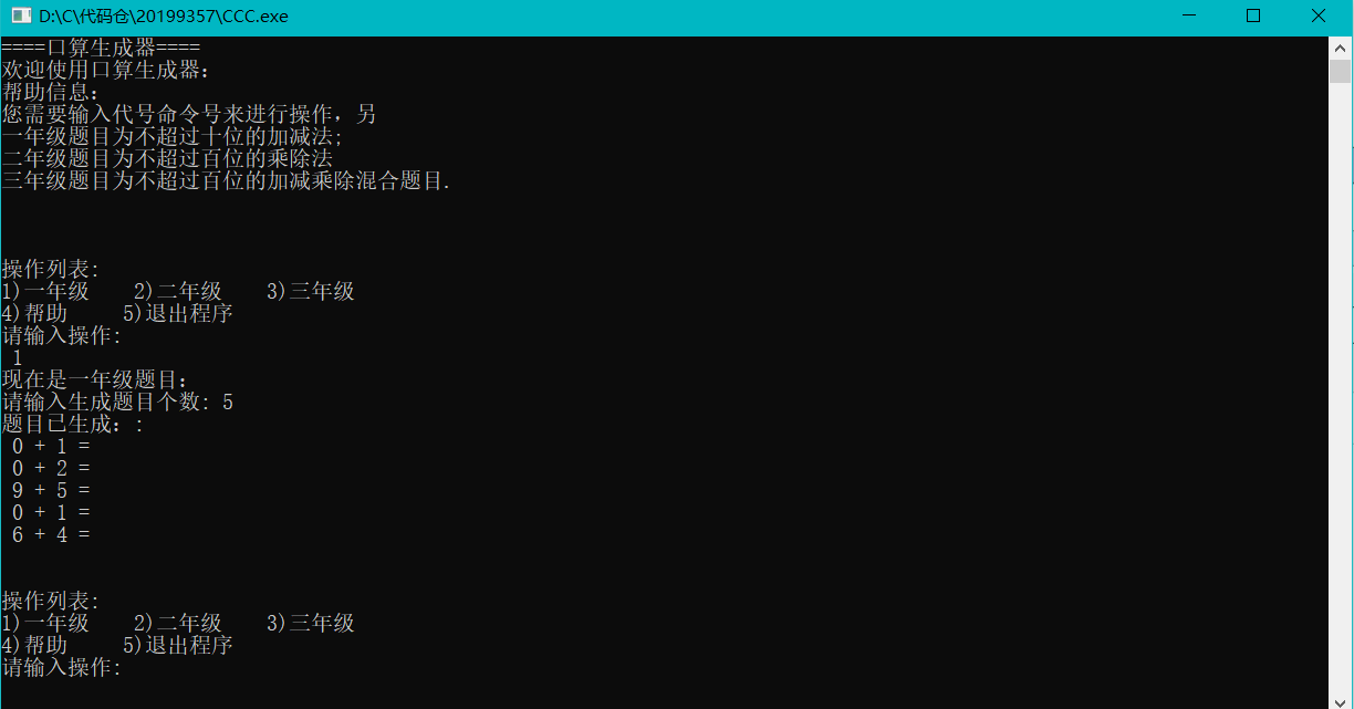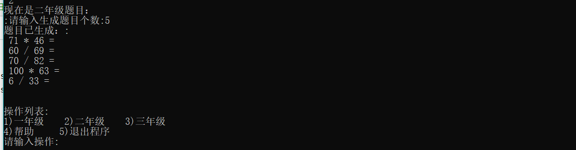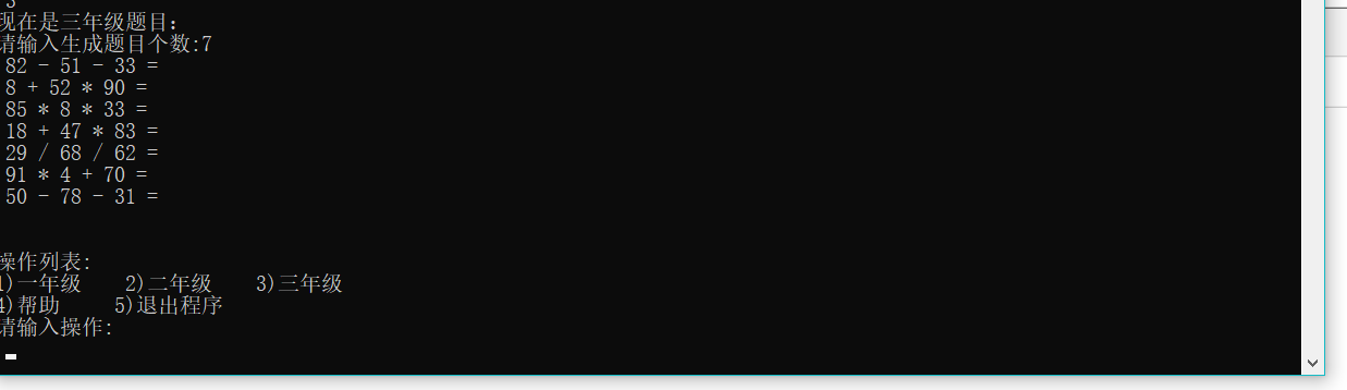 printf("三年级题目为不超过百位的加减乘除混合题目.\n\n");