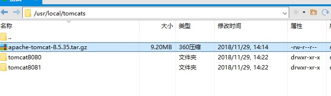 cd /usr/local/tomcats/ #先进入上传目录 tar -xvzf apache-tomcat-8.5.35.tar.gz #解压