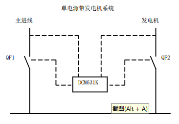 2)当主进线失电,备自投跳开1进线开关(或失压脱扣跳开),然后发出发电机启动命令,当发电机电压合格后,备自投发出发电机开关合闸。