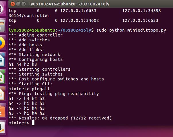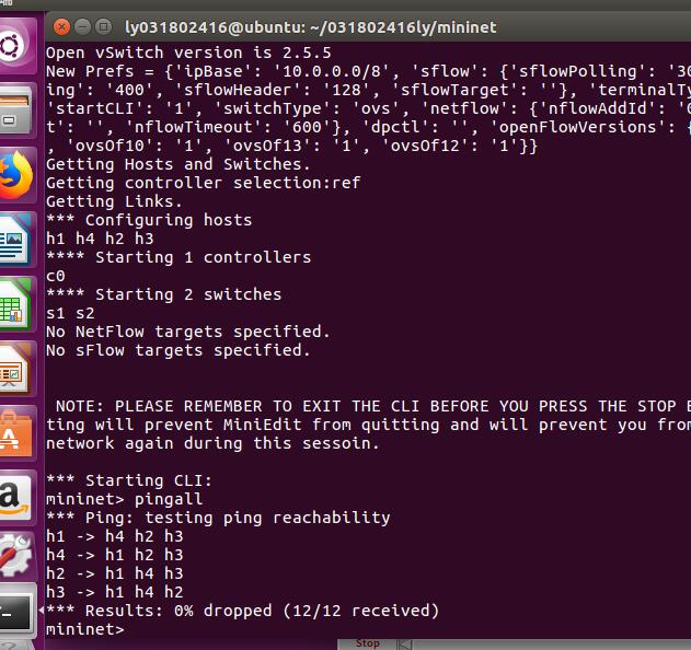 点击左下角的 Run,运行拓扑,由于开启了 CLI,可使用 pingall 命令测试主机的连通性,并做其他扩展操作。