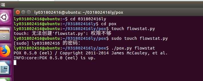 在 pox 安装目录下(Mininet 完整安装包含了 pox)执行以下命令运行 pox 脚本$ ./pox.py flowstat