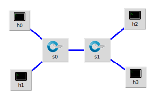 #!/usr/bin/python from mininet.net import Mininet from mininet.node import Node from mininet.link import TCLink from mininet.log import setLogLevel, info def myNet(): "Create network from scratch using Open vSwitch." info( "*** Creating nodes\n" ) switch0 = Node( 's0', inNamespace=False ) switch1 = Node( 's1', inNamespace=False ) h0 = Node( 'h0' ) h1 = Node( 'h1' ) h2 = Node( 'h2' ) h3 = Node( 'h3' ) info( "*** Creating links\n" ) TCLink( h0, switch0) TCLink( h1, switch0) TCLink( h2, switch1) TCLink( h3, switch1) TCLink( switch0, switch1) info( "*** Configuring hosts\n" ) h0.setIP( '192.168.123.1/24' ) h1.setIP( '192.168.123.2/24' ) h2.setIP( '192.168.123.3/24' ) h3.setIP( '192.168.123.4/24' ) info( "*** Starting network using Open vSwitch\n" ) switch0.cmd( 'ovs-vsctl del-br dp0' ) switch0.cmd( 'ovs-vsctl add-br dp0' ) switch1.cmd( 'ovs-vsctl del-br dp1' ) switch1.cmd( 'ovs-vsctl add-br dp1' ) for intf in switch0.intfs.values(): print intf print switch0.cmd( 'ovs-vsctl add-port dp0 %s' % intf ) for intf in switch1.intfs.values(): print intf print switch1.cmd( 'ovs-vsctl add-port dp1 %s' % intf ) print switch0.cmd(r'ovs-ofctl -O OpenFlow13 add-flow dp0 priority=1,in_port=1,actions=push_vlan:0x8100,set_field:4096-\>vlan_vid,output:3' ) print switch0.cmd(r'ovs-ofctl -O OpenFlow13 add-flow dp0 priority=1,in_port=2,actions=push_vlan:0x8100,set_field:4097-\>vlan_vid,output:3' ) print switch0.cmd(r'ovs-ofctl -O OpenFlow13 add-flow dp0 priority=1,dl_vlan=0,actions=pop_vlan,output:1' ) print switch0.cmd(r'ovs-ofctl -O OpenFlow13 add-flow dp0 priority=1,dl_vlan=1,actions=pop_vlan,output:2' ) print switch1.cmd(r'ovs-ofctl -O OpenFlow13 add-flow dp1 priority=1,in_port=1,actions=push_vlan:0x8100,set_field:4096-\>vlan_vid,output:3' ) print switch1.cmd(r'ovs-ofctl -O OpenFlow13 add-flow dp1 priority=1,in_port=2,actions=push_vlan:0x8100,set_field:4097-\>vlan_vid,output:3' ) print switch1.cmd(r'ovs-ofctl -O OpenFlow13 add-flow dp1 priority=1,dl_vlan=0,actions=pop_vlan,output:1' ) print switch1.cmd(r'ovs-ofctl -O OpenFlow13 add-flow dp1 priority=1,dl_vlan=1,actions=pop_vlan,output:2' ) info( "*** Running test\n" ) h0.cmdPrint( 'ping -c 3 ' + h1.IP() ) h0.cmdPrint( 'ping -c 3 ' + h2.IP() ) h0.cmdPrint( 'ping -c 3 ' + h3.IP() ) h1.cmdPrint( 'ping -c 3 ' + h2.IP() ) h1.cmdPrint( 'ping -c 3 ' + h3.IP() ) h2.cmdPrint( 'ping -c 3 ' + h3.IP() ) info( "*** Stopping network\n" ) switch0.cmd( 'ovs-vsctl del-br dp0' ) switch0.deleteIntfs() switch1.cmd( 'ovs-vsctl del-br dp1' ) switch1.deleteIntfs() info( '\n' ) if __name__ == '__main__': setLogLevel( 'info' ) info( '*** Scratch network demo (kernel datapath)\n' ) Mininet.init() myNet()