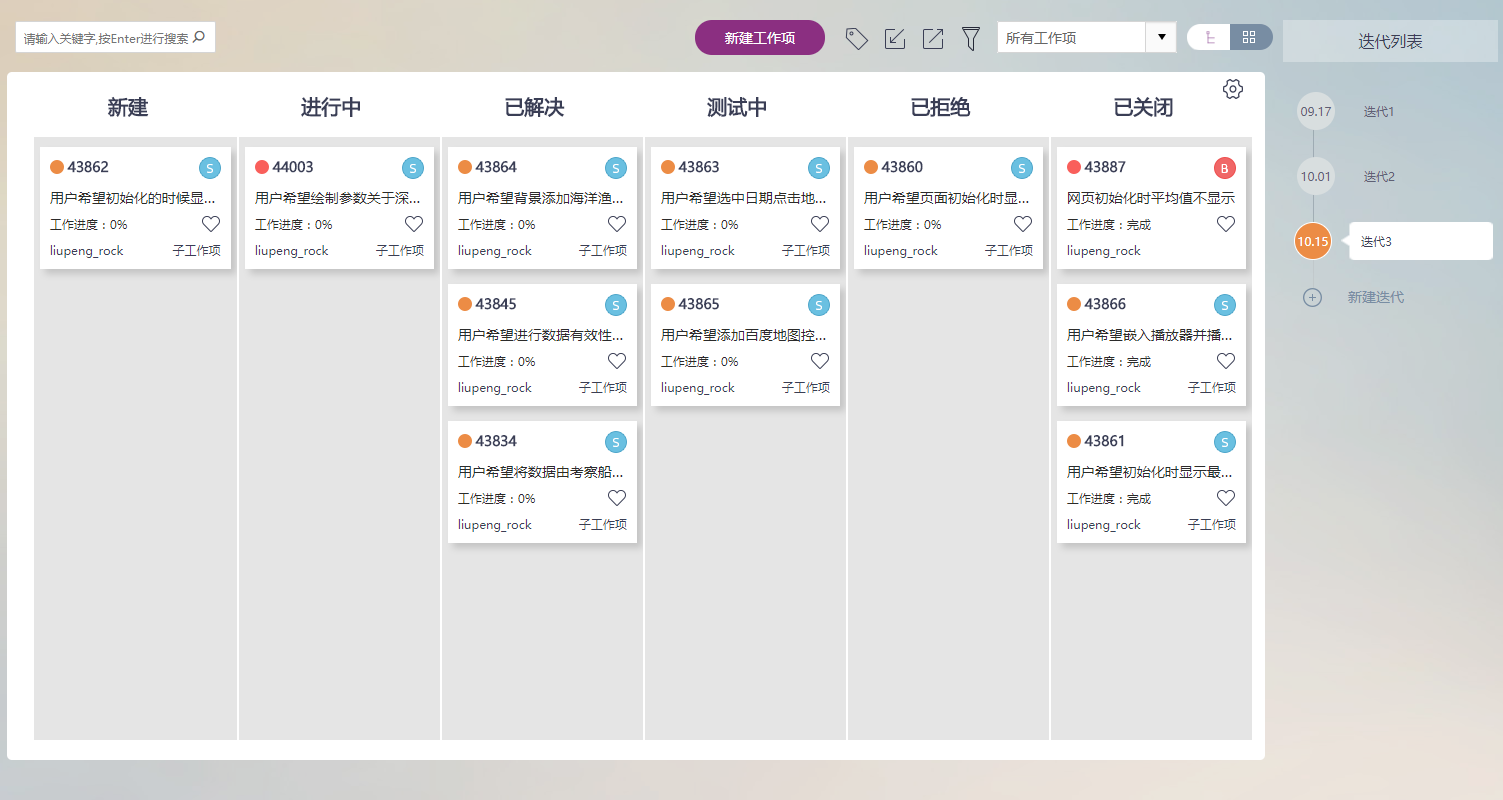而DevCloud项目管理则提供对Scrum的完美适配,一个看板同时实现了用户故事与迭代的管理,直接将敏捷的思想融入到了工具中。