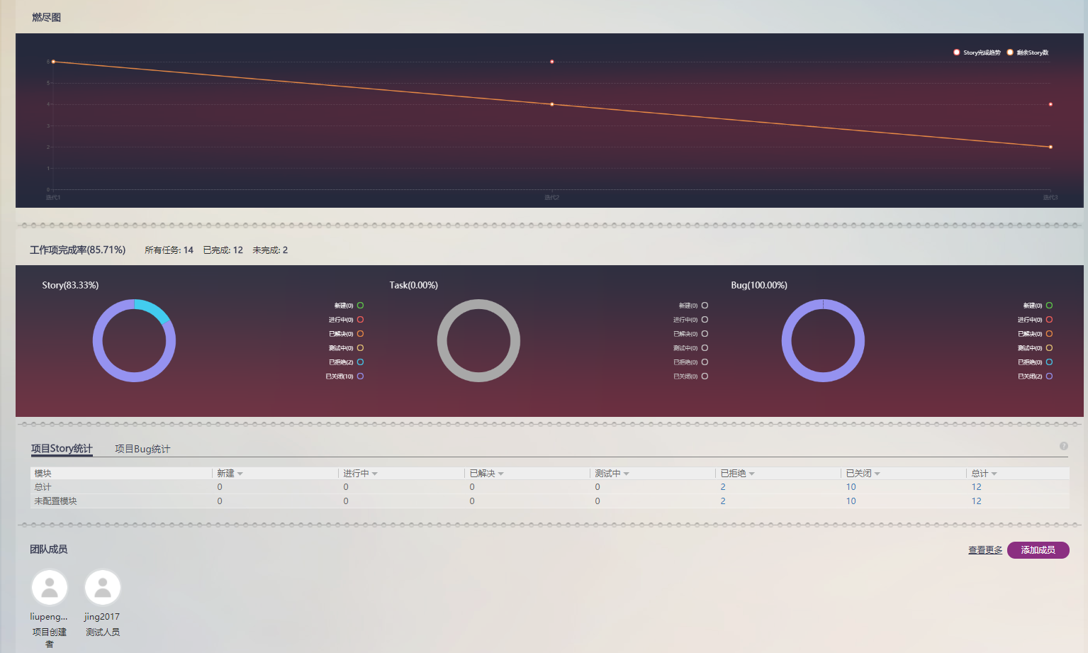 DevCloud项目管理提供丰富的统计服务,包括迭代管理图、燃尽图、工作项完成情况统计图、统计表、项目成员统计管理等。