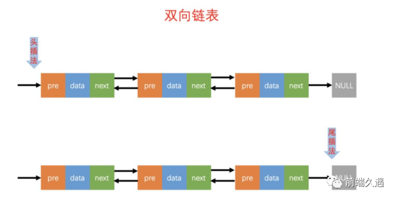 双向链表的添加元素包括头插法和尾插法。