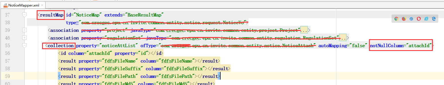 那么即使在上图的noticeAttList对应的sql中,有字段,比如fdfsFileSuffix字段,为' ',那也不会生成一条空对象。