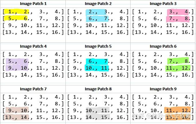 - 输入: 将同一位置的patch按通道顺序铺平形成矩阵