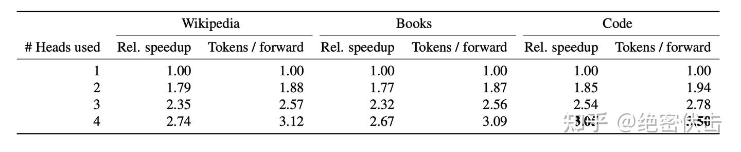 下图展示了在不同 head 数情况下的加速情况,在 𝑛=4 的情况下,推理速度大幅提升。