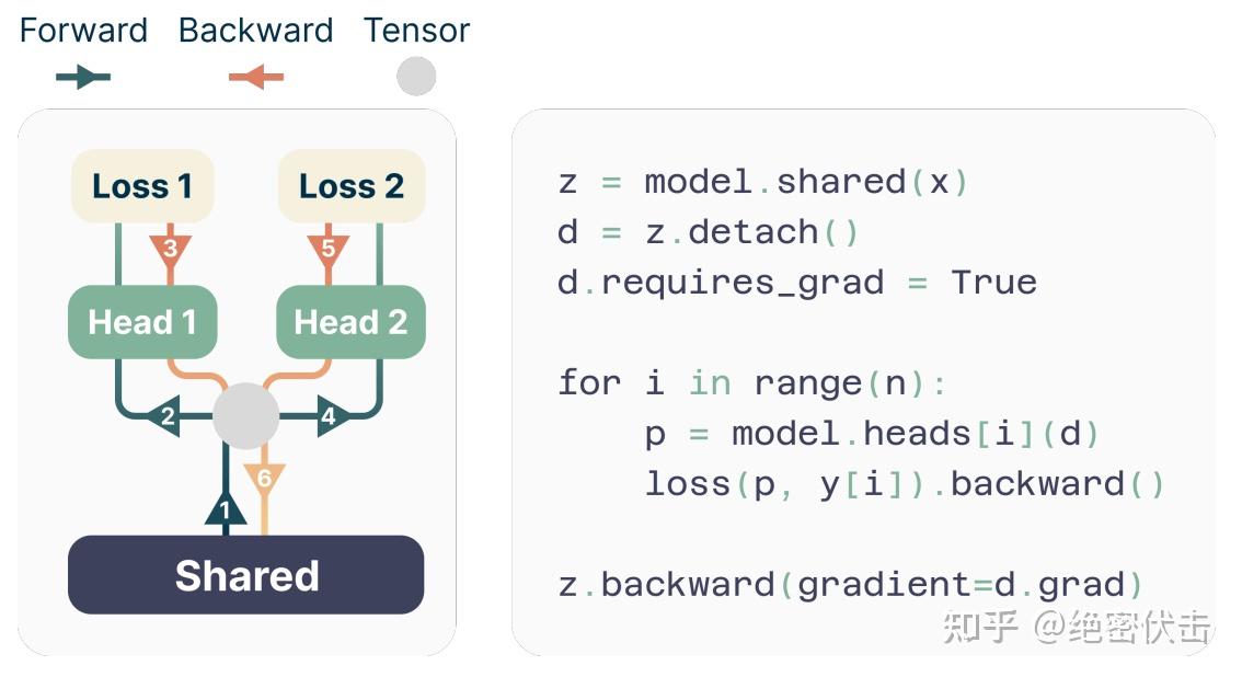 直接实现 MTP 时,对于每个位置,需存储 n 个预测 head 的 logits(维度 𝑛×𝑉,其中 V 是词表大小),会占用大量 GPU 显存,为了解决这个问题,论文采用了顺序执行 forward/backward: