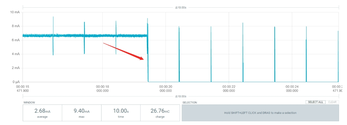 当拔掉USB之后,观察功耗仪从唤醒状态,又重新进入低功耗休眠状态。这样也就完成USB插入唤醒和拔出睡眠的操作。