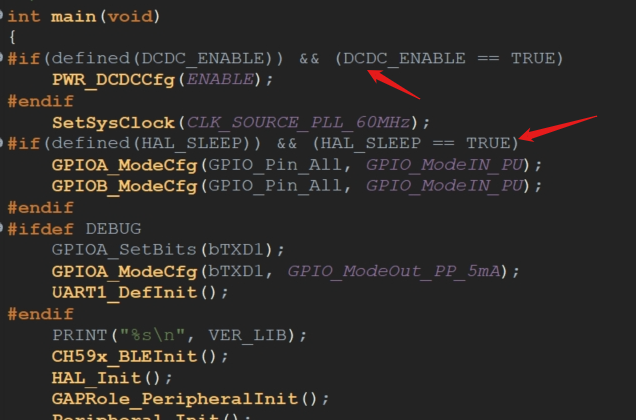 PWR_PeriphWakeUpCfg(DISABLE, RB_SLP_GPIO_WAKE, Long_Delay);