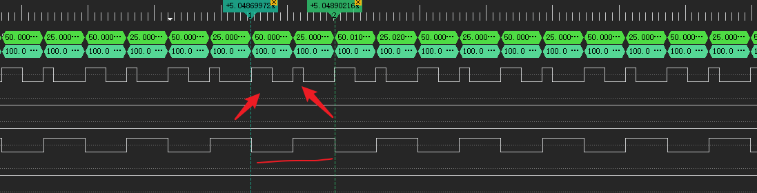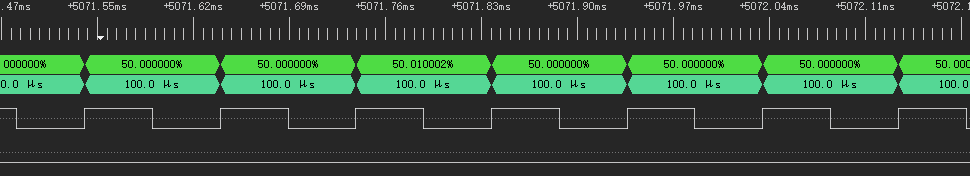 在中断服务函数中可以进行对PWM的占空比实时动态更改,通过逻辑分析仪,观察整个占空比波形变化