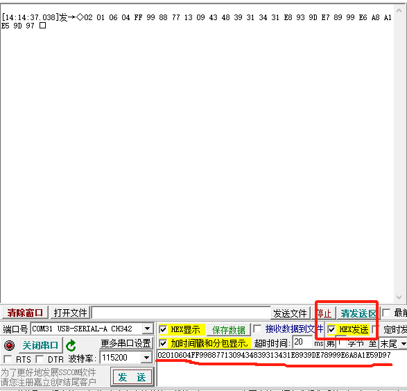 可以通过十六进制查看发送的指令最后两位数据是否为0X0D和0X0A,则是命令中采用回车符和换行符作为分隔符和结束符使用。