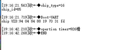 然后将31字节低8位存储在 Buffer[6]中,FD字节高8位存储在 Buffer[7]中。这样就得到两个字节的校验值,也就是脱机烧录器输出的日志chip UID的最后两位校验值。
