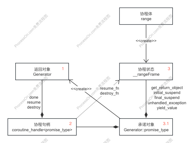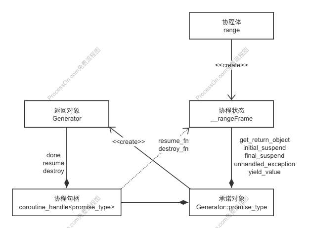 5) co_yield 对应承诺对象的 yield_value 接口,接口参数表示当前需要保存的数据