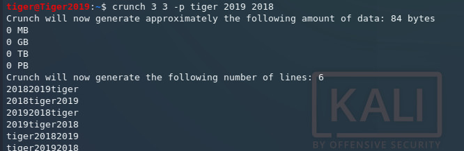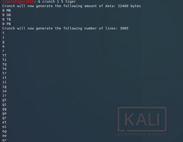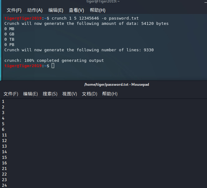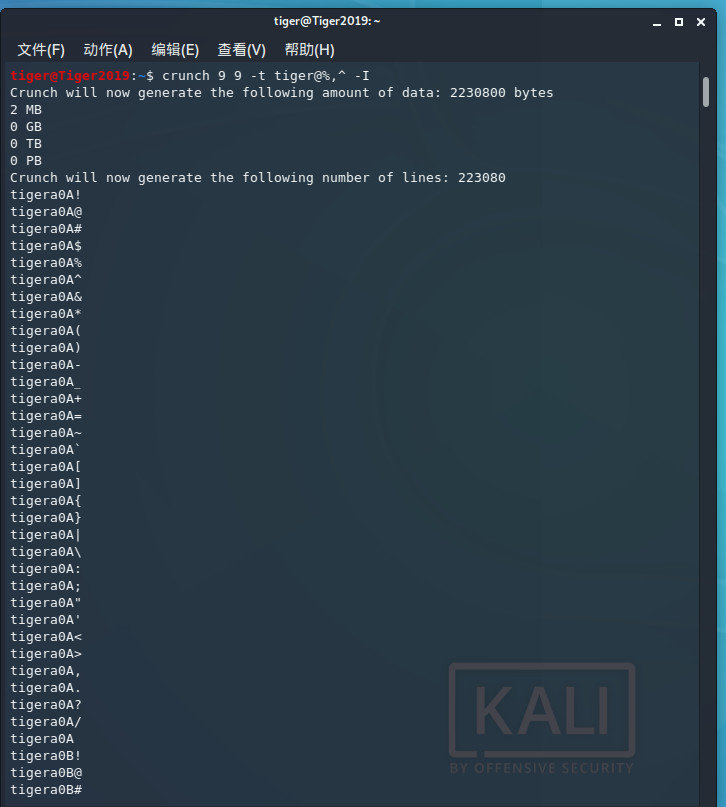 Crunch是一款linux下的密码字典文件生成工具,并且已经被默认安装在了Kali Linux系统中,通过它我们可以创建一个属于我们自己的字典。