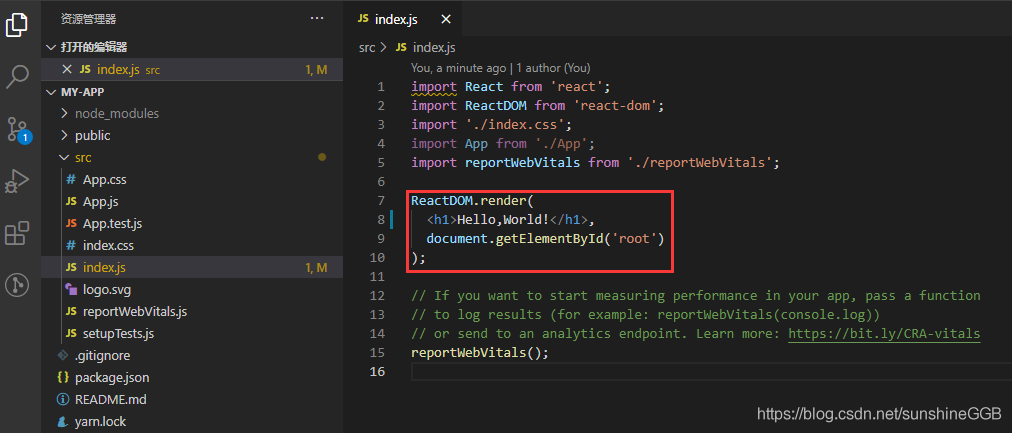 至此,可以使用vscode开发react了,第一个react程序完成。欧耶(o)/
