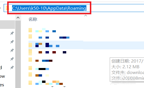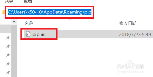 4.我的电脑是win10的系统,打开的默认路径是C:\Users\k50-10\Appdata\roming目录,在这个目录下没有看到pip目录,因此需要手动创建一个。