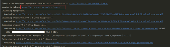•安装 django-excel 库 并使用 阿里云 的镜像源