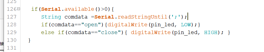 if(comdata=="open"){digitalWrite(pin_led, LOW);}